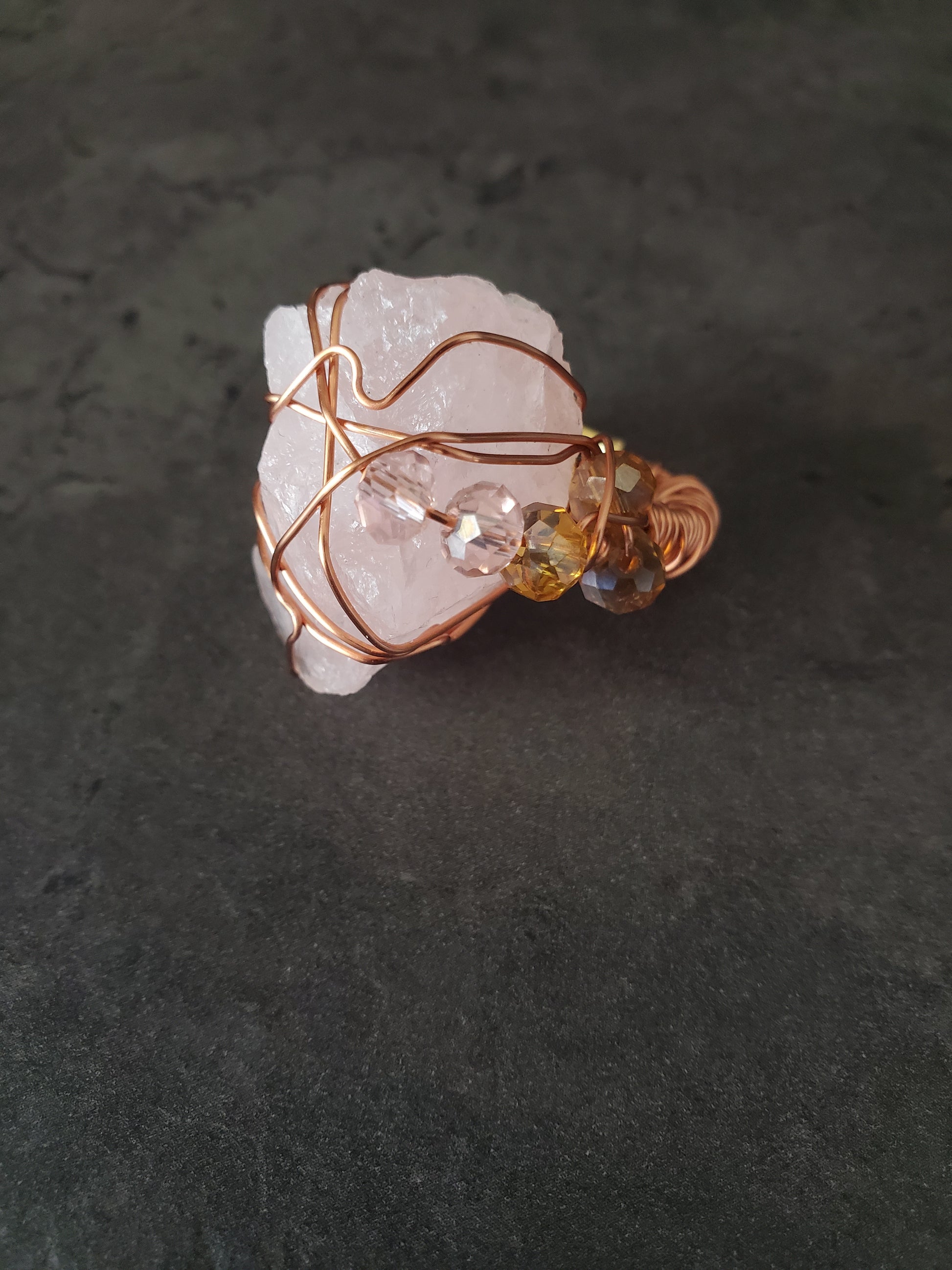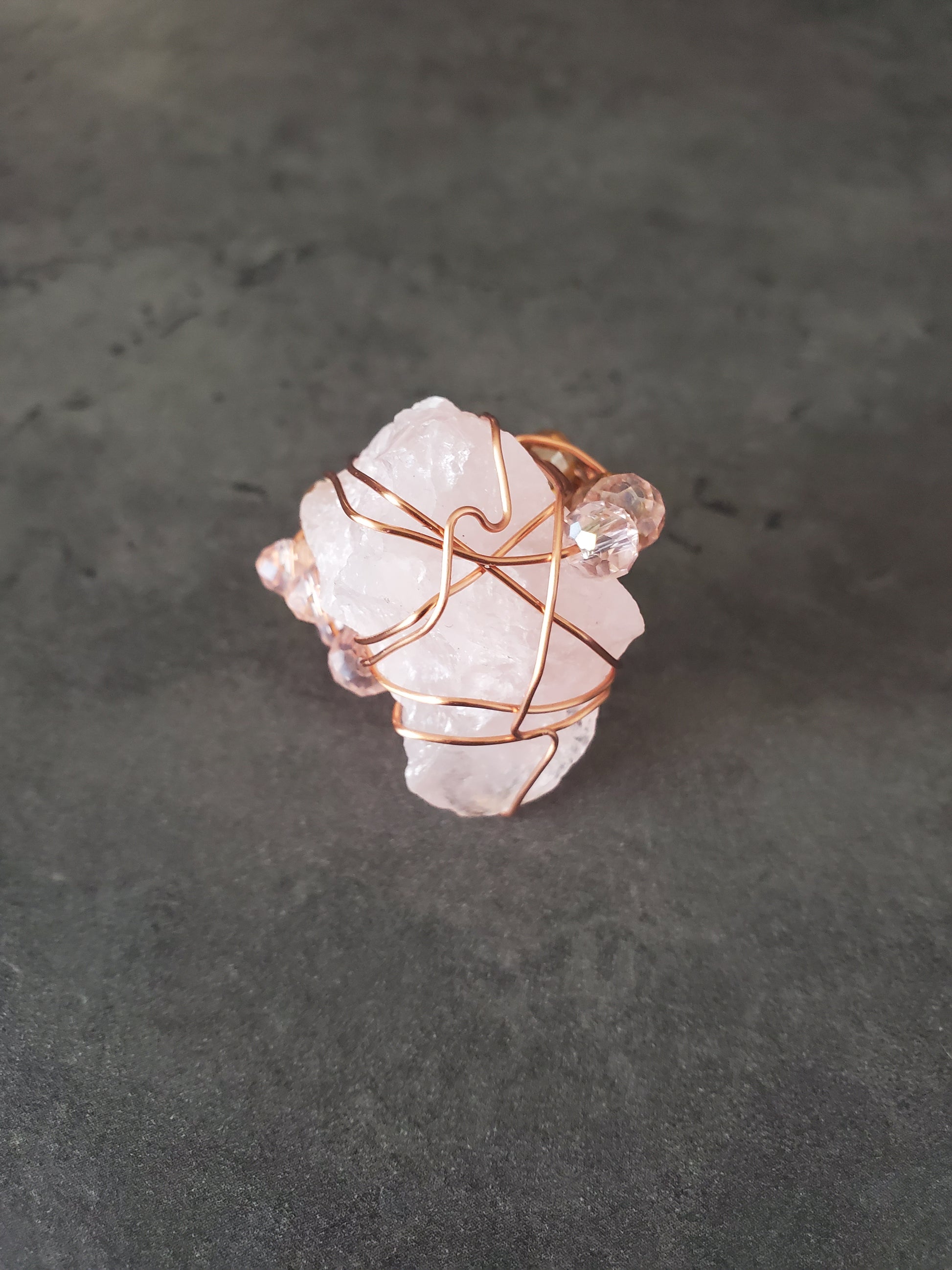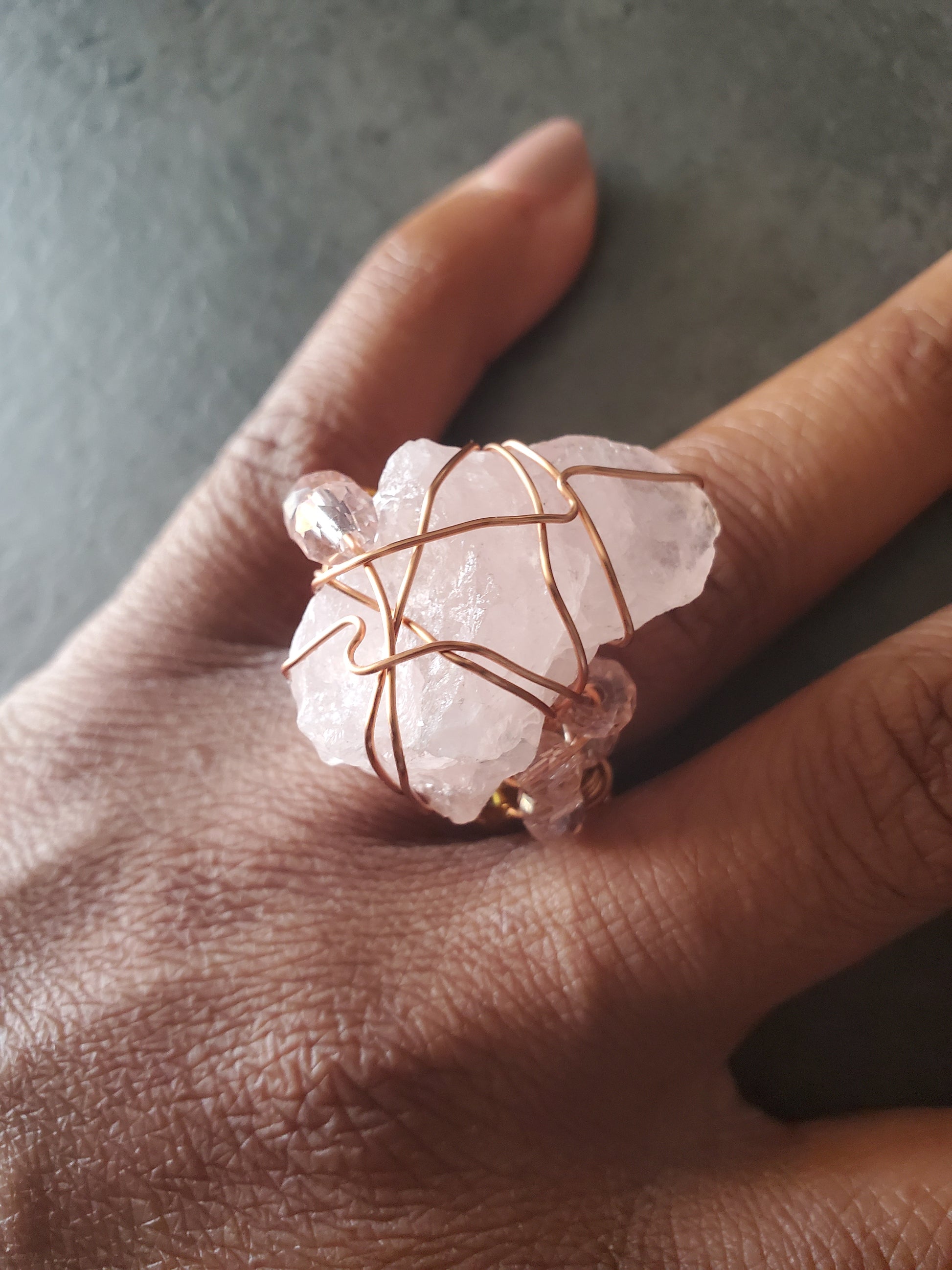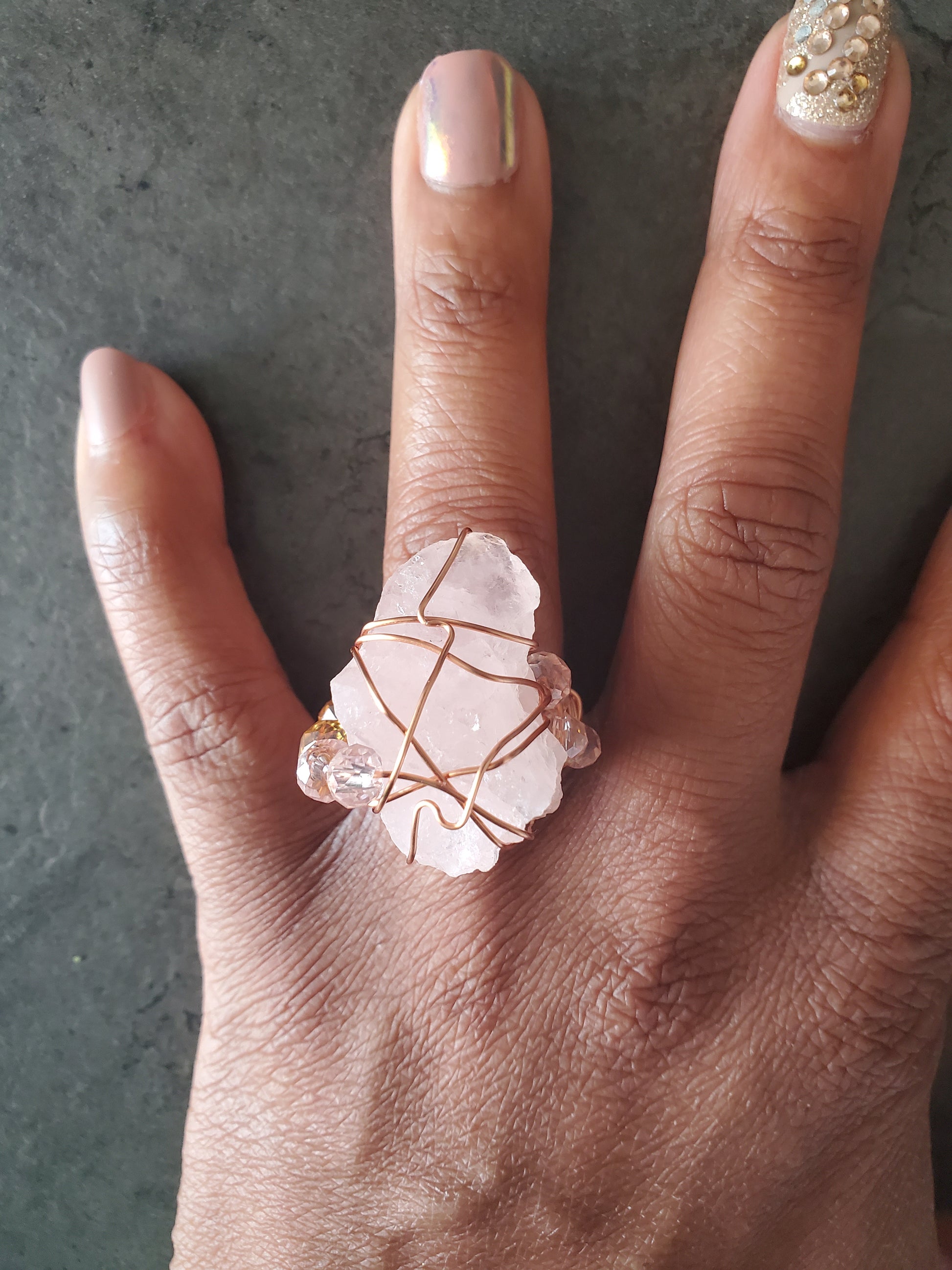 Crystal Cluster Rose Quartz Galaxy Ring-One of a kind raw crystal jewelry